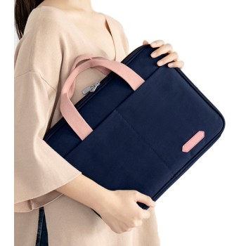 - Wodoodporna tkanina skutecznie chroni urządzenie przed wodą i deszczem, a miękkie i puszyste wnętrze zapobiega zarysowaniu laptopa