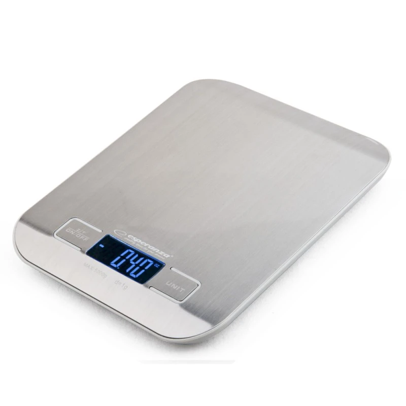 Bardzo precyzyjna, obudowa typu 'slim', o metalicznie błyszczącej powierzchni, z niebiesko podświetlanym wyświetlaczem. Nadaje się do ważenia wszystkich suchych i płynnych składników i potraw.