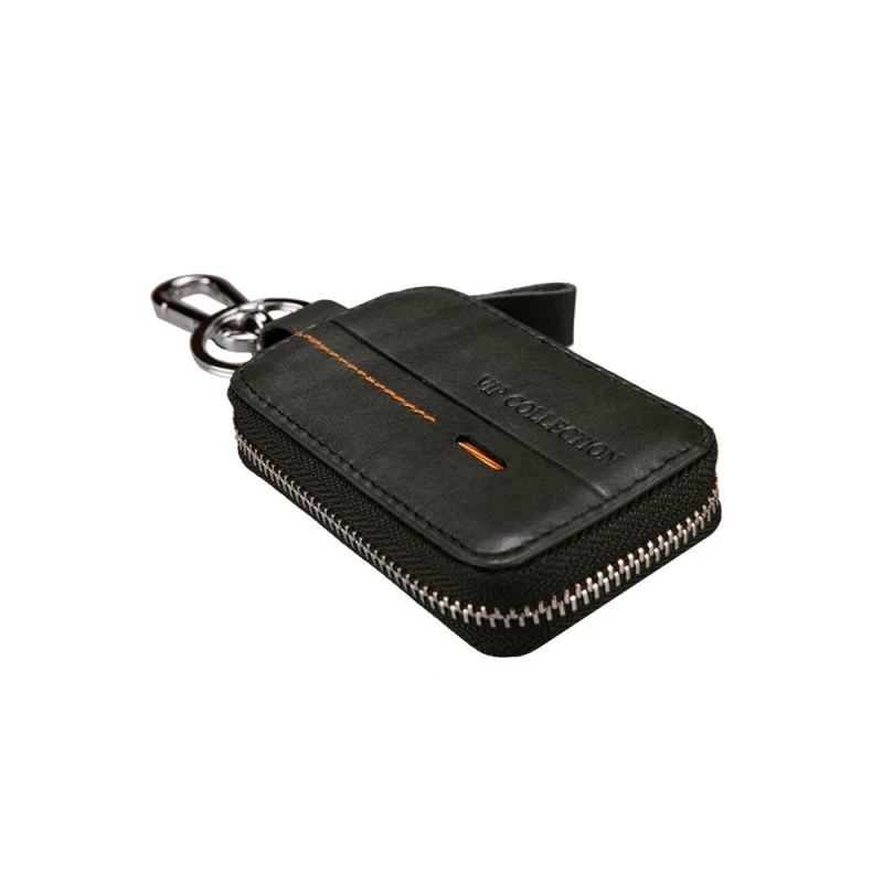 Oryginalne i designerskie etui na klucze z kolekcji Beverly Hills w czarnym matowym kolorze marki Vip Collection. Bardzo starannie i estetycznie, ręcznie wykonane z wysokiej klasy naturalnej skóry licowej. Logo Vip Collection wytłoczone w skórze z dodatkiem designerskiego ściegu nici w kolorze pomarańczowym. Etui na klucze to propozycja dla osób ceniących sobie jakość, niezawodność, funkcjonalność oraz proste rozwiązania. Dzięki etui klucze będą zawsze w idealnym porządku. Etui posiada: kieszeń na klucze zamykaną na suwak, łańcuszek do przypięcia kluczy, karabińczyk. Wszystkie detale wykonane zostały z wysokiej klasy metalu, co zapewnia długą żywotność w procesie użytkowania a tym samy świadczy o wysokiej klasie produktu. Etui zapakowane jest w eleganckie opakowanie typu prezentowego - sygnowane logo VIP COLLECTION. Opakowanie może wystąpić w kolorze granatowo/złotym lub brązowo/piaskowym. Linia BEVERLY HILLS stworzona została z myślą o osobach, które oczekują elegancji w połączeniu z nowymi modowymi trendami. Wymiary etui w centymetrach: 8-9,5 x 5 x 2