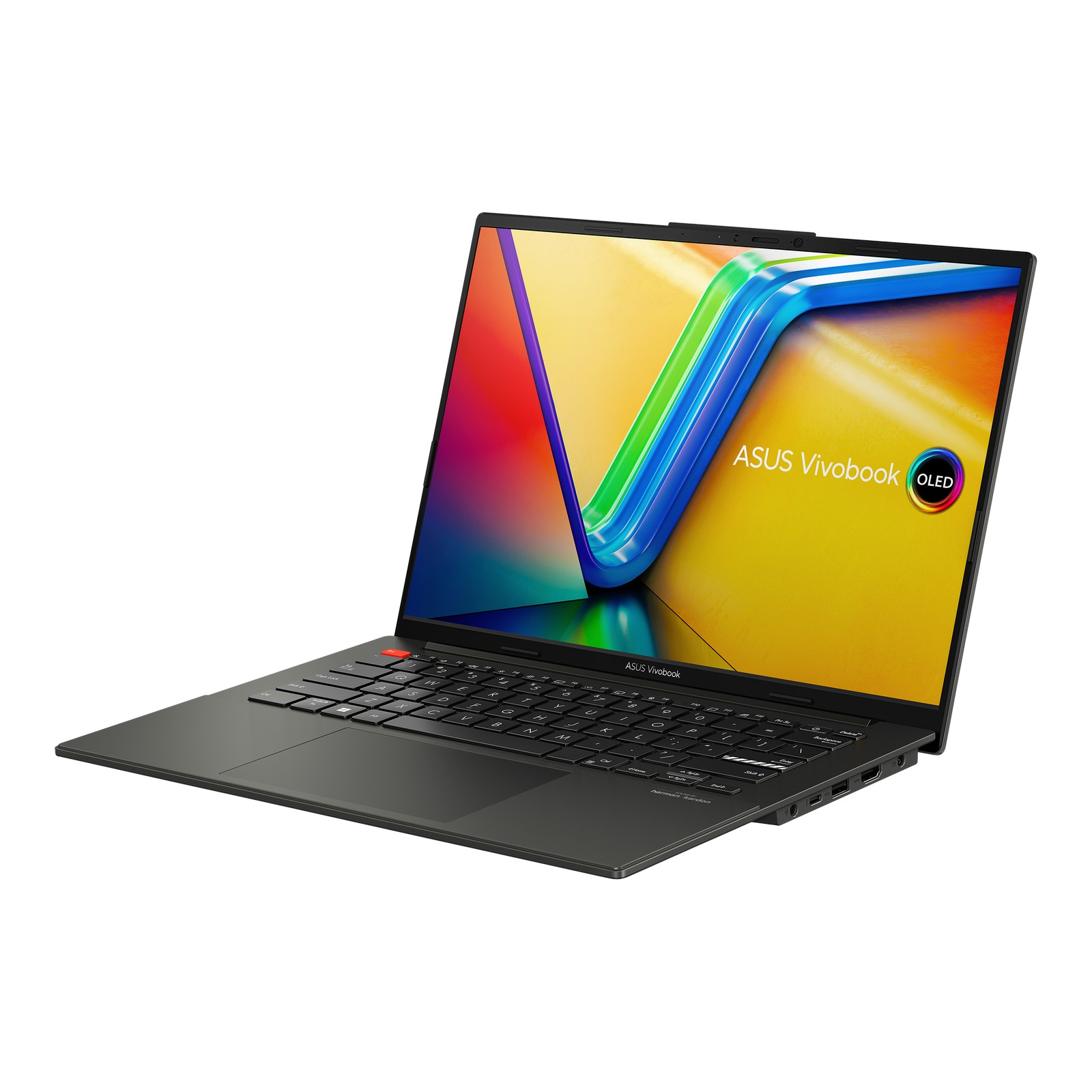 Vivobook S 14 OLED wyróżnia się smukłą, metalową obudową w eleganckim odcieniu Midnight Black, która nadaje mu profesjonalny i nowoczesny wygląd. Podświetlana klawiatura oraz czytnik linii papilarnych zwiększają komfort i bezpieczeństwo użytkowania. Zawias 180° i kompaktowe rozmiary sprawiają, że laptop jest niezwykle mobilny, idealny do pracy w drodze. Lekka konstrukcja oraz cienkie ramki wokół ekranu nadają urządzeniu nowoczesny i minimalistyczny charakter. Precyzyjny touchpad i ergonomiczne rozmieszczenie klawiszy przekładają się na wyjątkową wygodę obsługi na co dzień.