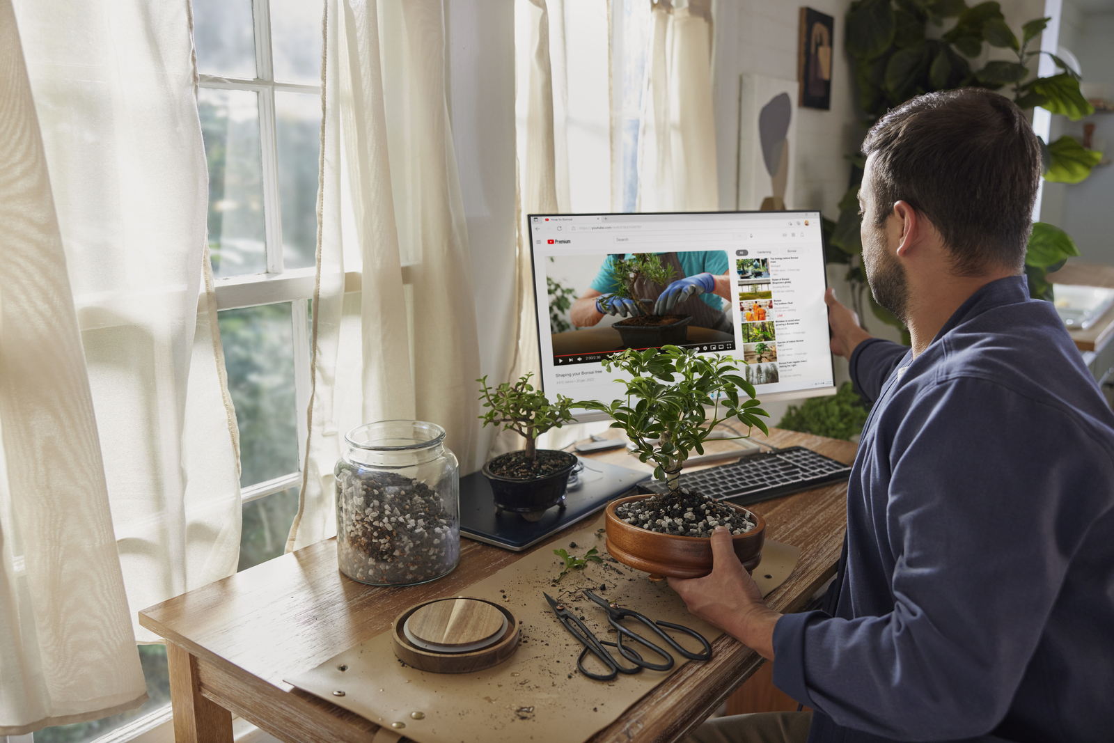 Biała, smukła obudowa i minimalistyczna stylistyka sprawiają, że monitor świetnie prezentuje się w każdym wnętrzu – od nowoczesnego biura po domowe stanowisko pracy.
