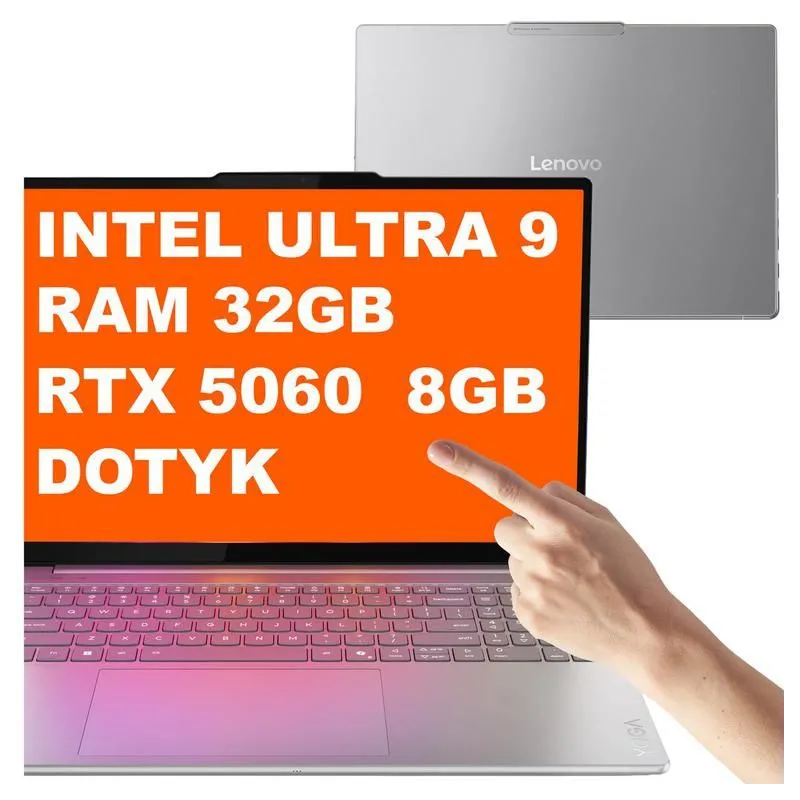 Laptop Lenovo Yoga Pro 9 16IAH10 / 83L00000US / Ultra 9 / 32GB / 1TB / RTX 5060 / 3.2k / Dotyk / OLED / Win 11 / Szary