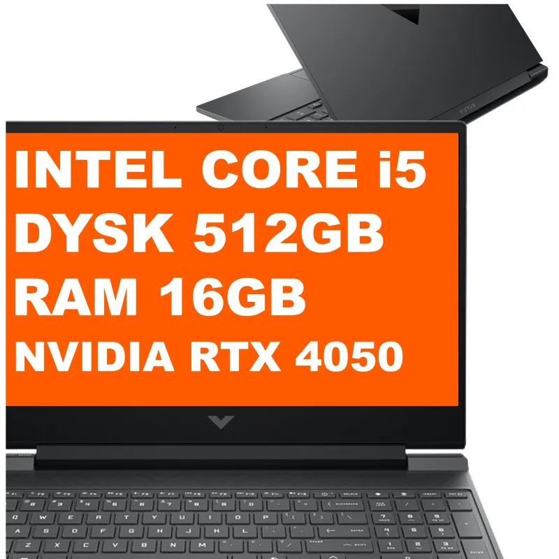 Laptop Gamingowy HP Victus 15-fa2082wm / B5EQ3UA / Intel i5 / 16GB / 512GB / RTX 4050 / FullHD / Win 11 / Czarny