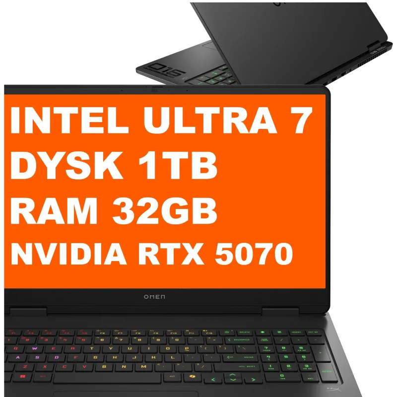 Laptop Gamingowy HP Omen Slim 16-an0003nr / B9KK3UA / Ultra 7 / 32GB / 1TB / RTX 5070 / 2k / Win 11 / Czarny