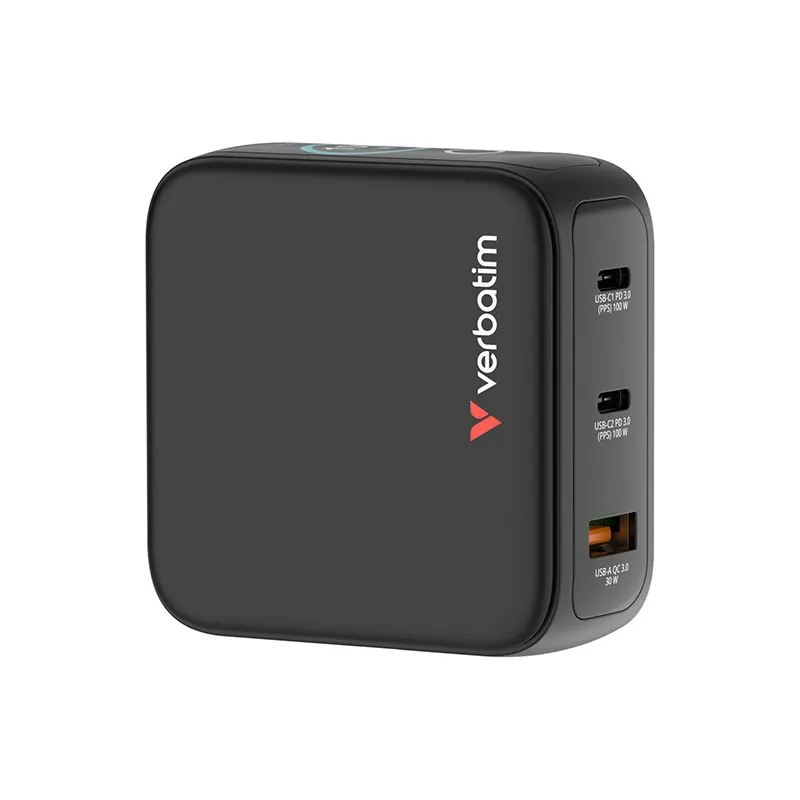 Ładowarka GaN Verbatim z wyświetlaczem 2xUSB-C 1xUSB-A 100W wtyczki EU UK US