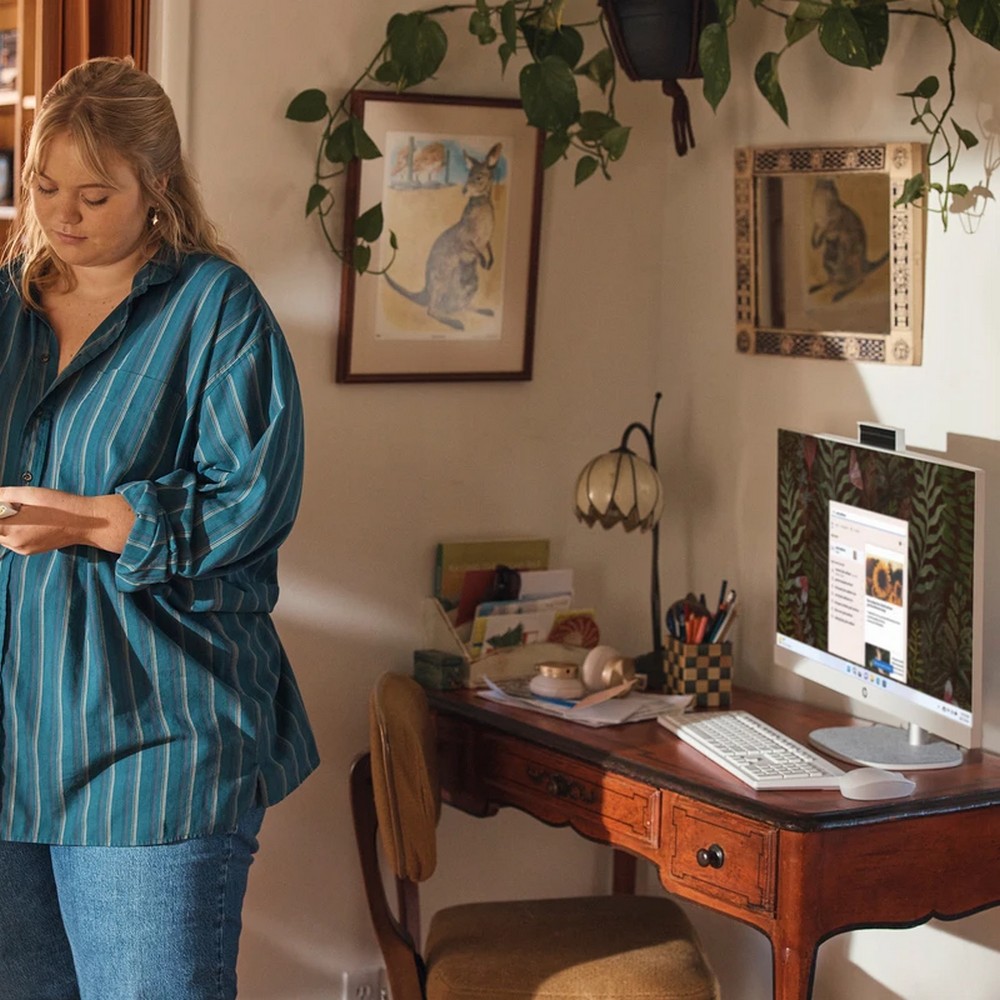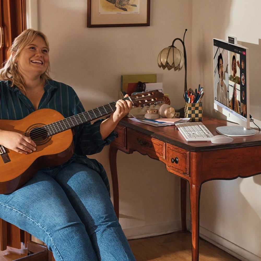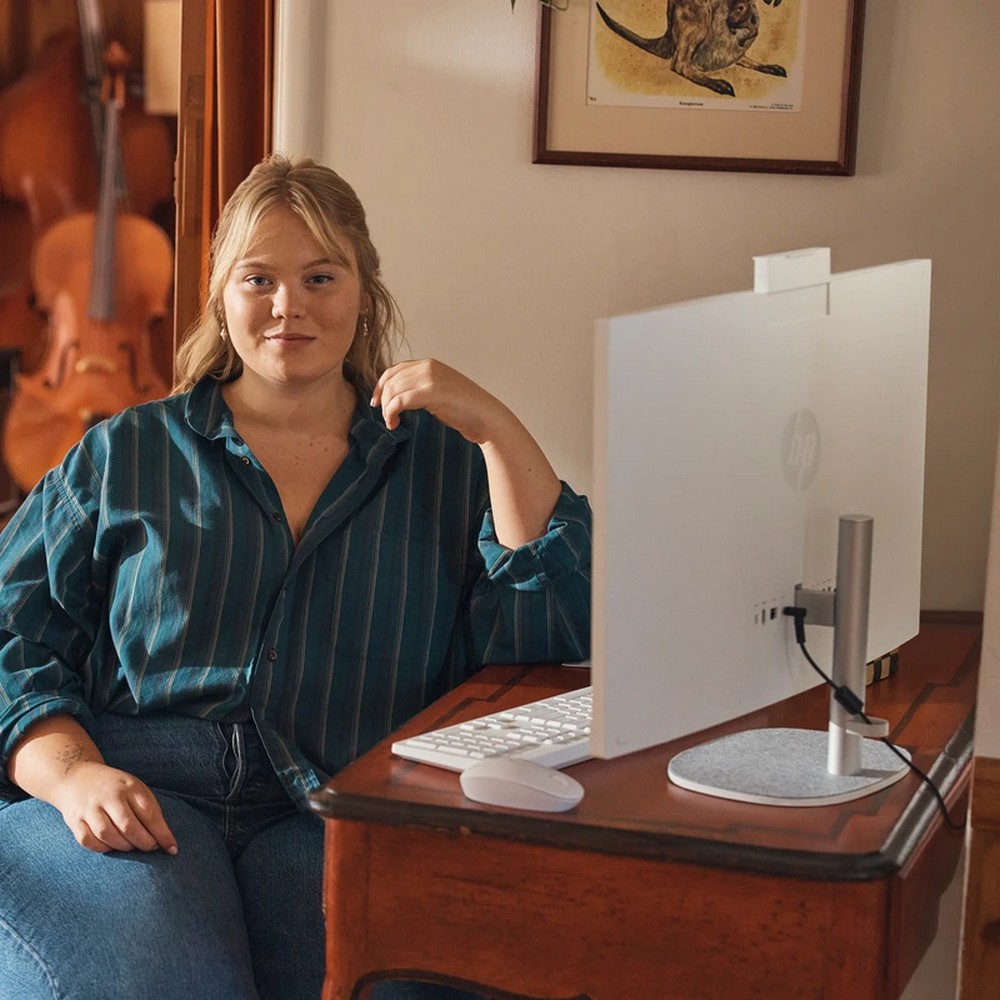 HP zadbało o ekologię - obudowa wykorzystuje elementy z plastiku z recyklingu i materiały pochodzące z odpadów oceanu, co obniża ślad środowiskowy urządzenia. Wygodna, wysuwana kamerka FHD z funkcją IR oraz podwójnymi mikrofonami z redukcją szumów ułatwia wideokonferencje i chroni prywatność użytkownika. W zestawie znajdziesz przewodową klawiaturę i mysz, a bogate opcje łączności (USB-C, USB-A, HDMI-out, Ethernet, Wi‑Fi 6, Bluetooth) zapewniają bezproblemowe podłączenie peryferiów. System chłodzenia i kompaktowa konstrukcja zostały zaprojektowane tak, by utrzymać stabilną pracę przez cały dzień.
