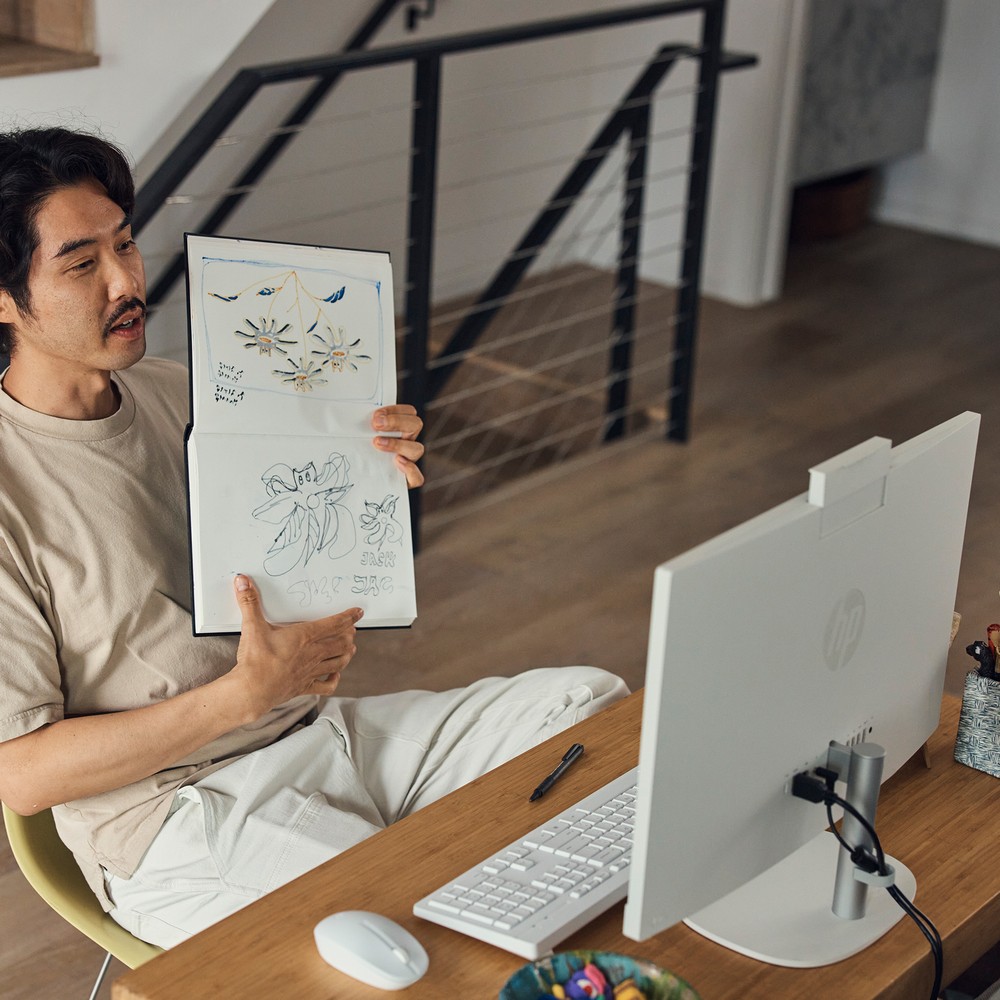 All-in-One HP 24 oferuje kompletny zestaw portów, w tym USB-C, porty USB-A, wyjście HDMI oraz gniazdo Ethernet do stabilnego połączenia sieciowego. Wbudowana kamera HP True Vision 1080p z funkcją IR i podwójnymi mikrofonami z redukcją szumów zapewnia wyraźne wideokonferencje i lepsze rozpoznawanie twarzy. Obsługa Wi-Fi 6 i Bluetooth 5.4 gwarantuje szybką i stabilną łączność bezprzewodową, co jest istotne dla pracy zdalnej i strumieniowania. Zestaw z bezprzewodową klawiaturą i myszką w kolorze Shell White uzupełnia estetyczny, zrównoważony design urządzenia. Dodatkowo konstrukcja wykorzystuje materiały z recyklingu, co przemawia do świadomych ekologicznie użytkowników.