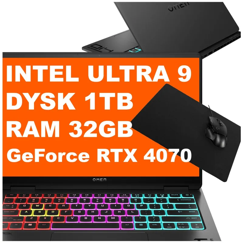 HP OMEN Transcend Laptop 14-fb0090nd / A12LTEA / Ultra 9 / 32GB / 1TB / RTX 4070 / 3k / OLED / W11 / Mysz / Podkładka / Czarny