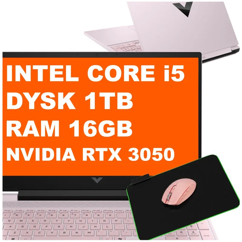 Gamingowy Laptop Victus HP 15-fa2043nw / C1LW6EA / Intel Core i5 / 16GB / 1TB / RTX 3050 / FHD / 144Hz / Mysz / Podkładka / W11