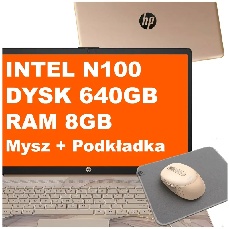 Laptop HP 17-cn3164ds / BS6W5UA / Intel N100 / 8GB / 640GB / Intel UHD / HD+ / Mysz / Podkładka / Win 11 / Chai Latte