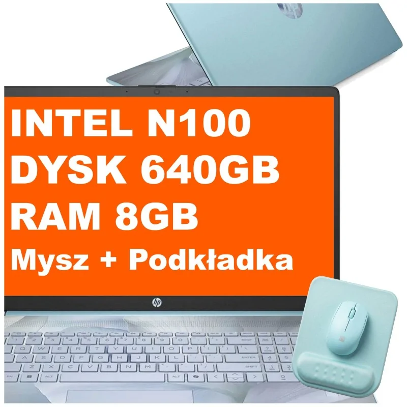 Laptop HP 17-cn3165ds / BS6W6UA / Intel N100 / 8GB / 640GB / Intel UHD / HD+ / Mysz / Podkładka / Win 11 / Niebieski