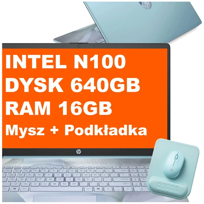 Laptop HP 17-cn3165ds / BS6W6UA / Intel N100 / 16GB / 640GB / Intel UHD / HD+ / Mysz / Podkładka / Win 11 / Niebieski