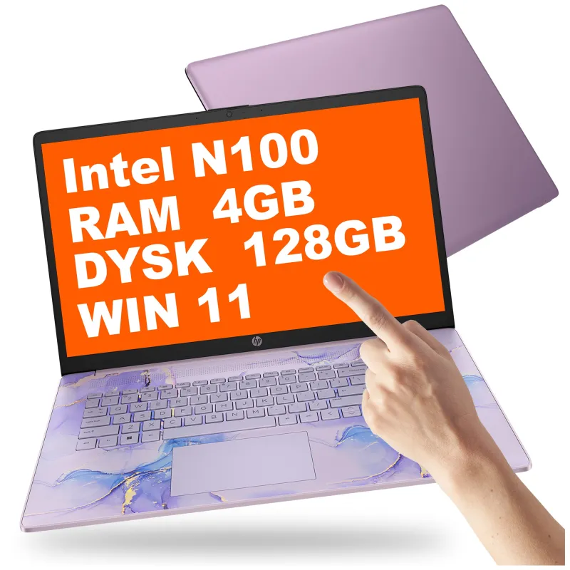 Laptop edukacyjny HP 17-cn3143ds / BK1C2UA / Intel N100 / 4GB / UFS 128GB / Intel UHD / HD+ / Dotyk / Win 11 / Fiolet