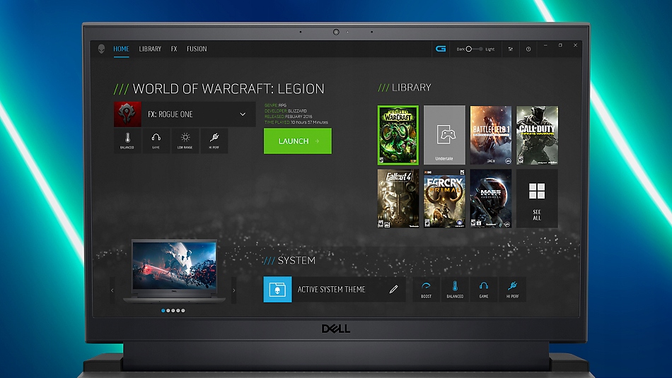 Dzięki Alienware Command Center w serii Dell G możesz nie tylko dostosować sprzęt do każdej gry, w którą grasz, ale także spersonalizować przestrzeń i konfigurację, aby oprogramowanie wyglądało i działało dokładnie tak, jak chcesz, bez zakłócania pracy rozgrywka lub inne czynności. Łatwy w użyciu interfejs łączy wszystkie różne ustawienia systemu z biblioteką gier, ułatwiając dostęp do informacji o grach. Bez względu na źródło, centrum dowodzenia zapewnia łatwy dostęp do twoich gier i możliwość dostrojenia ustawień dla każdej z nich. Stwórz unikalny profil gry i pozostanie dokładnie taki, jak chcesz, bez względu na to, gdzie uruchomisz.