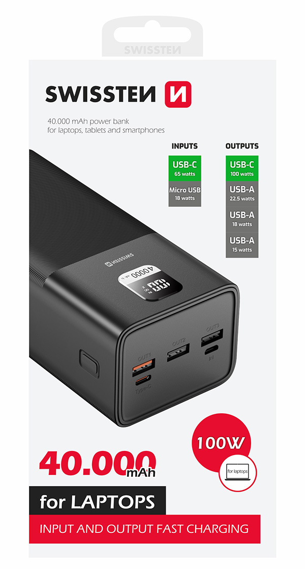SWISSTEN Powerbank 40000 mAh 3x USB-A USB-C 100W mocny DO LAPTOPA (220 139 41)
